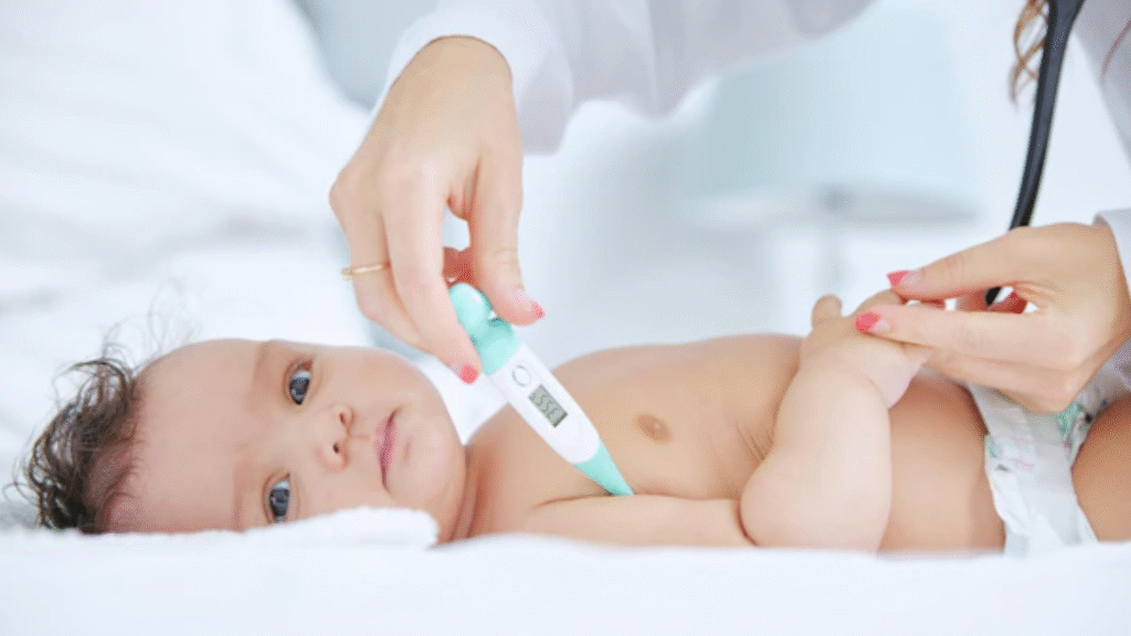 3 महीने के बच्चे बीमार पड़ने पर क्या करें,अगर बच्चे का शरीर छूने में गर्म महसूस लग रहे है,तो थर्मामीटर से तापमान ज़रूर नापें।